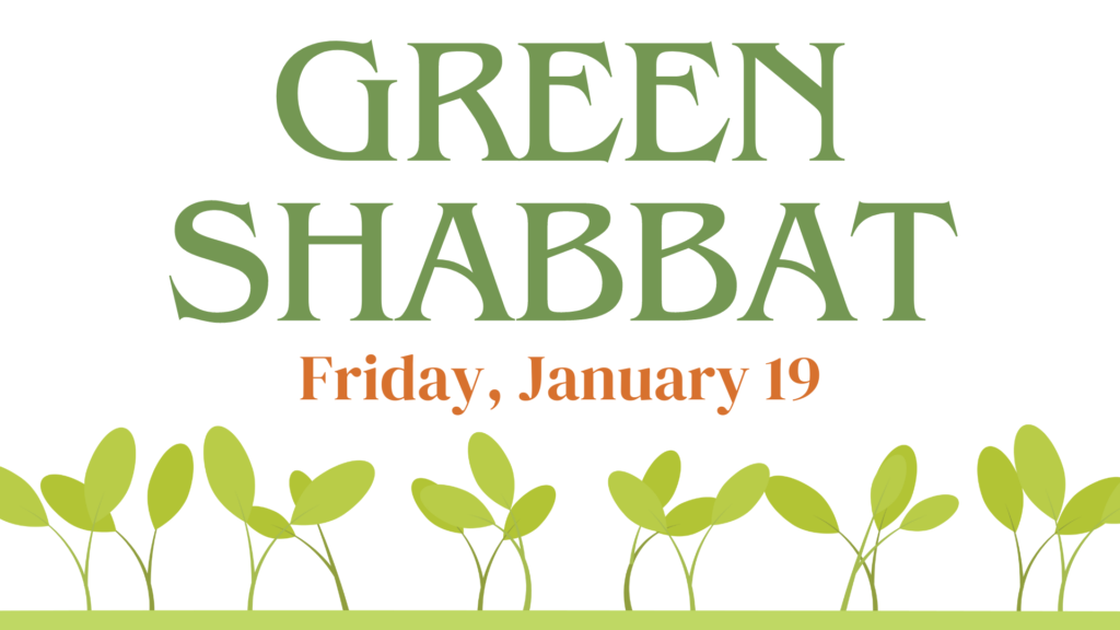 Join the Green Team at Shabbat services on Friday, January 19, 2024 for a special celebration of Tu Bishvat, the New Year of the Trees. There will be a climate-themed activity for children during the family dinner portion of the evening.