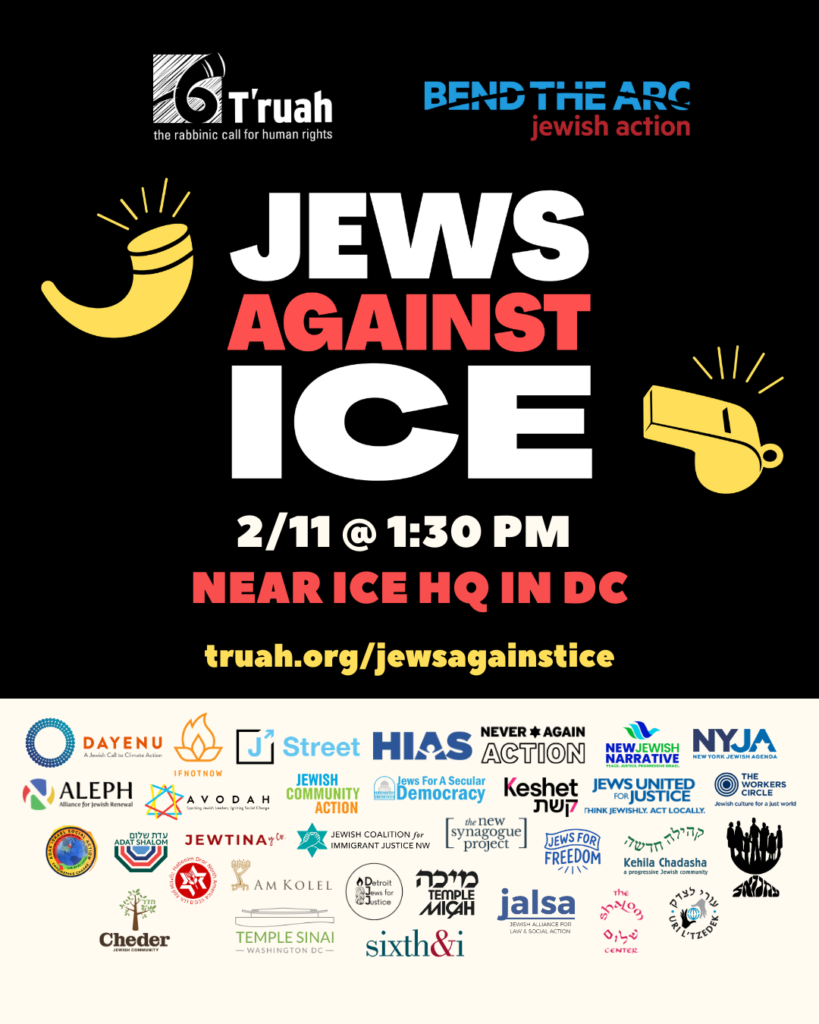 Please join Rabbi Goldstein for an upcoming Jewish-led action that will make visible the powerful Jewish opposition to ICE’s cruel and destructive immigration enforcement system.