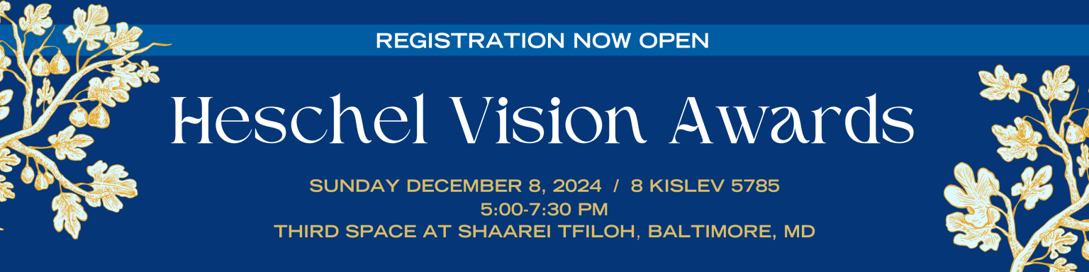 The Heschel Vision Awards celebration will take place on Sunday, December 8 at 5 pm at Third Space at Shaarei Tfiloh in Baltimore. If interested in transportation to this event, please email Wendy Khan.