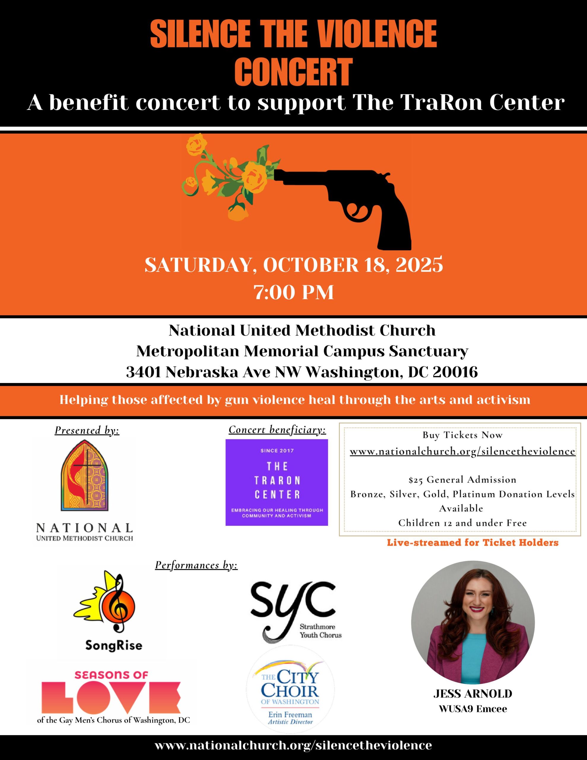 The concert will be held at the National United Methodist Church, 3401 Nebraska Ave NW. Tickets are $25 (free for children 12 and under). Can’t attend in person? Buy a ticket and watch via live stream!